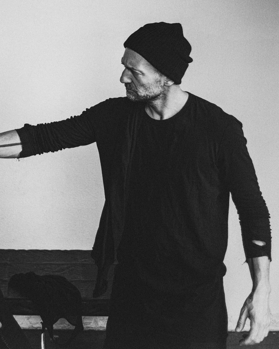 BORIS BIDJAN SABERI is a half German, half Persian menswear designer born on September 11, 1978 in Munich, Germany, to a Persian father and a German mother. These biographical factors play a fundamental role in Boris’s formation : they combine dual systems such as West/Middle East traditions and form/formless garments with the designer’s passion for numerology. 11 is in fact the symbolic trademark of the brand and the name of Boris Bidjan Saberi’s additional line. In 2007 Boris Bidjan Saberi launched his eponymous label, establishing his atelier in a place that fully represents the designer’s complex philosophy. In the frame of Monistrol de Montserrat, Saberi settles his first headquarter, later transferred in Barcelona. Monistrol as well as the current atelier stand for the geographical exemplifications of a secular spirituality, as in these industrial archaeology sites Boris develops the outlines of his alchemist laboratory for contemporary investigations. The designer matures a peculiar clothing language through the celebration of his innate heritage between European and Middle-Eastern culture. It is therefore the burst of an instinctive primitiveness in which raw materials and accurate tailoring fuse together.