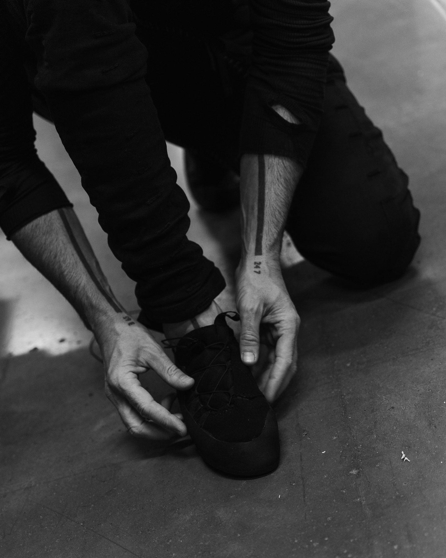 Climbing without ropes or harnesses over rock formations or artificial walls offers unique mental and physical challenges. As a keen climber, Saberi wanted to expand and enhance the apparel possibilities of bouldering. His personal connection with the sport together with his existing partnership with leading mountain sports brand Salomon resulted in a paradigm shift in bouldering style: the Athletic Bouldering FW23 collection. Created in collaboration with legendary climber Fred Nicole and So iLL, the collection brings together technical footwear, clothing and backpacks in a specific design language that both embraces and transcends utilitarianism.