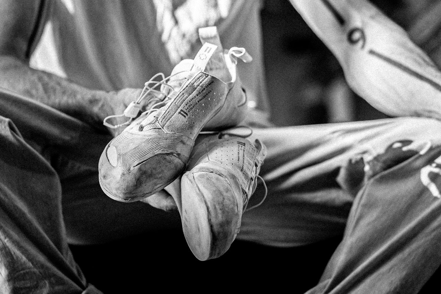 It’s super precise on all footholds — the feeling is amazing. For toe hooking, the grooved texture on the toe is excellent! Even better than the latest Scarpa model, which is already very good. The lacing also makes toe hooking extremely precise!