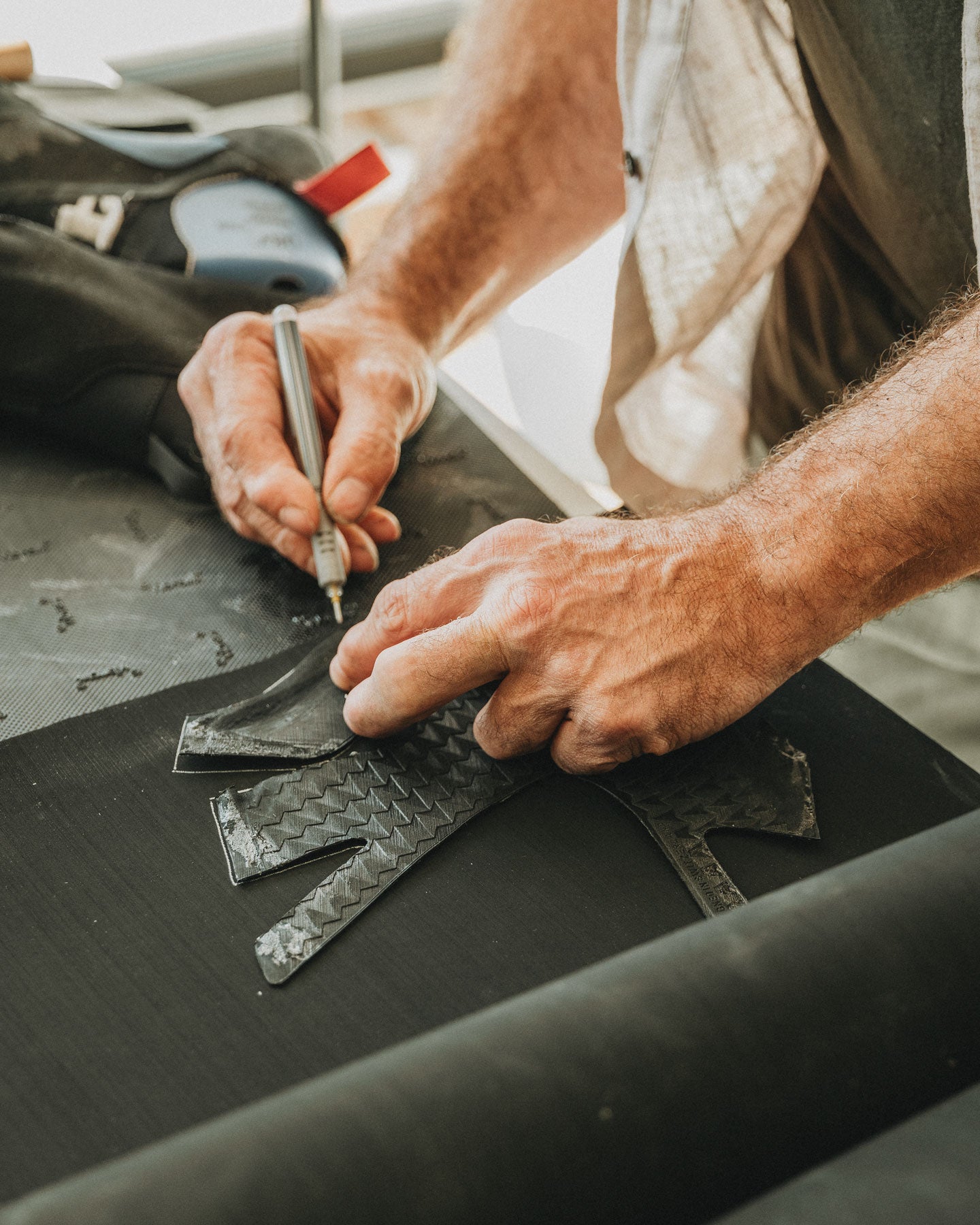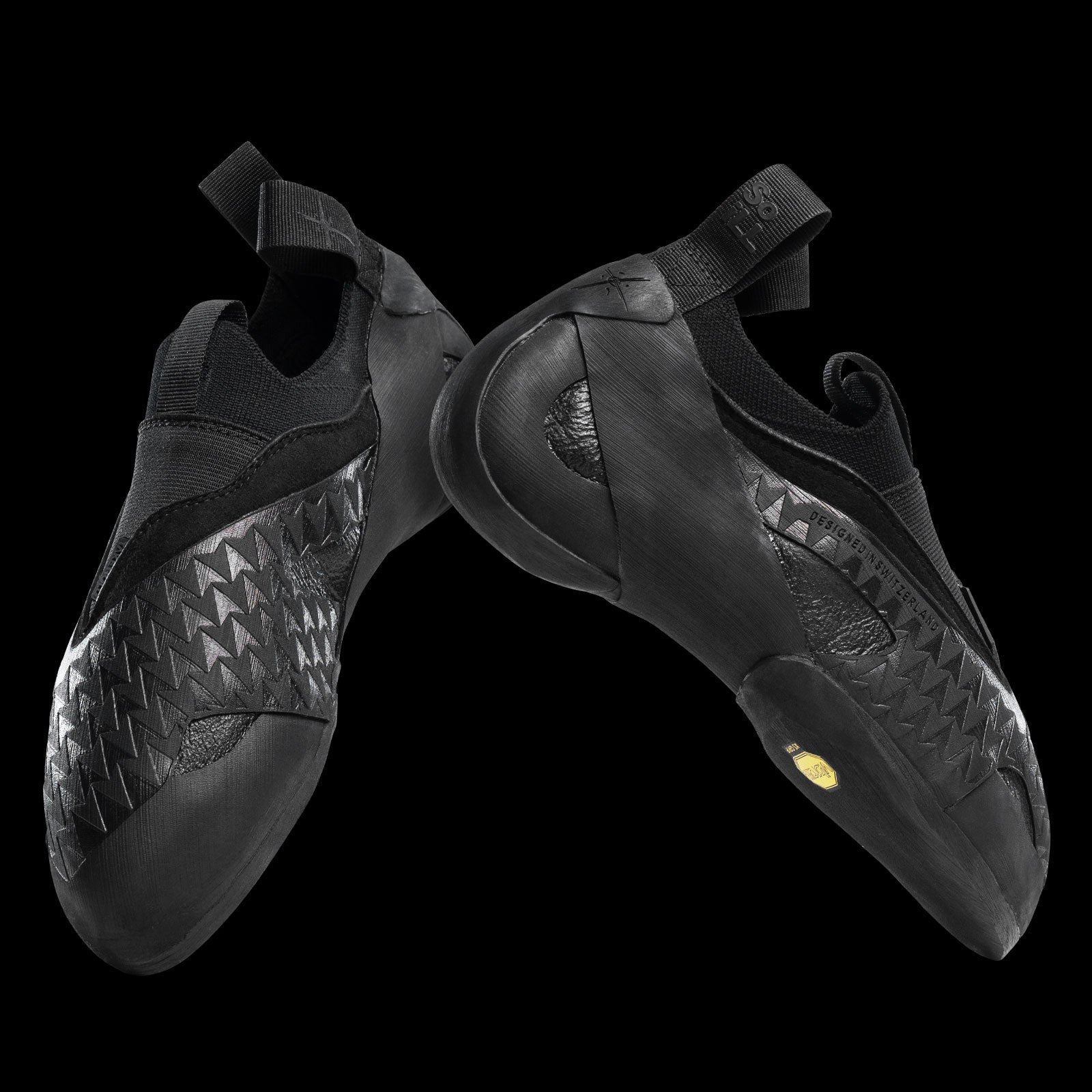 - Designed and built on a hand-shaped, downturned last by Fred Nicole, ROAM Rigid is a semi-stiff slipper developed with Jason Momoa as part of the So iLL x On The Roam collection. ROAM Rigid features a three-way stretch knit entry with an elastic band stitched to a durable, comfortable, unlined vegan microsuede upper. This shoe is tensioned from under the toe to the back of the heel while the laser etched rand generates tension as well. The midsole is composed of a thin proprietary fiberboard with a center cut out for the flexibility/edging. The outsole is split and outfitted with Vibram XS Grip Rubber which extends in a wide band to the top of the heel. ROAM Rigid is ideal for all types of angles and perfect for those who like a sensitive slipper with a little more support (than ROAM Soft). This shoe is also more adaptable to sport climbing with good edging and great heel/toe hooking abilities. It is, perhaps, the best shoe in our lineup, to date, for edging overall.
